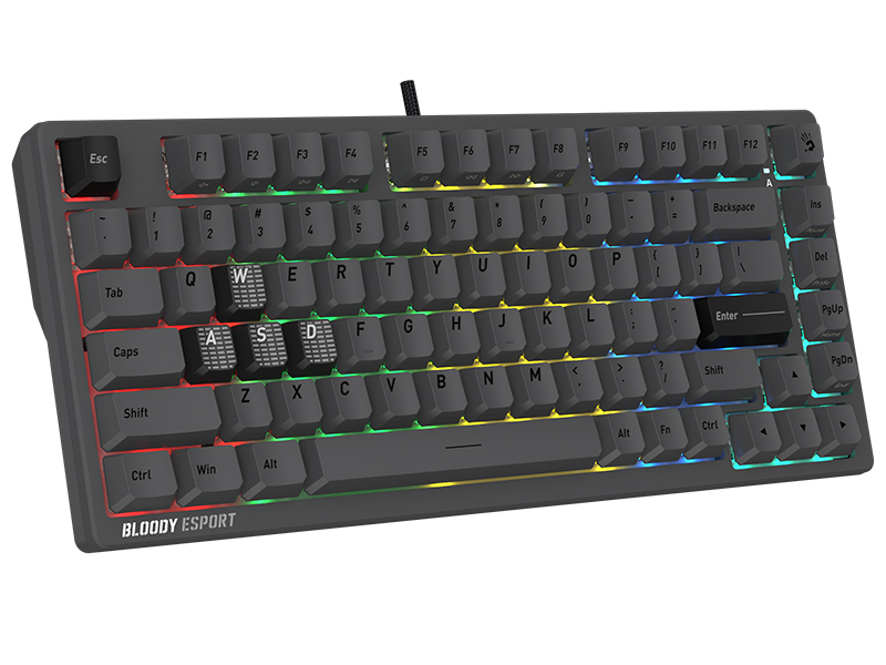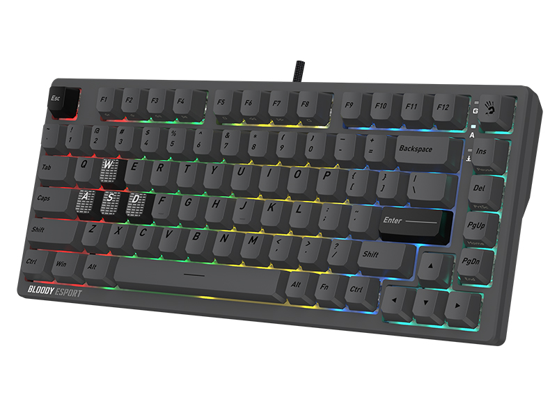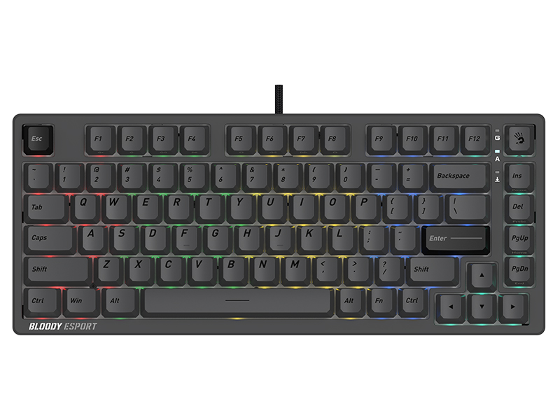 Klawiatura współpracuje z oprogramowaniem Bloody, które umożliwia konfigurację punktu aktywacji, Rapid Trigger, podświetlenia RGB oraz makr. Dzięki temu możesz dostosować działanie klawiatury do swojego stylu gry i preferencji.