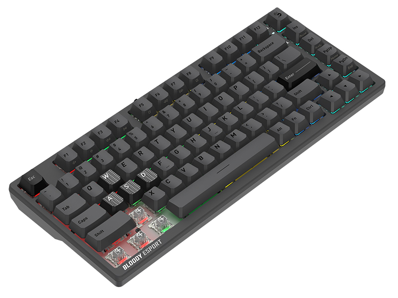 Klawiatura wykorzystuje przełączniki magnetyczne Bloody MS działające w technologii Hall-Effect. Zamiast klasycznych styków mechanicznych wykorzystują one czujnik magnetyczny do wykrywania ruchu klawisza, co pozwala na niezwykle dokładny odczyt nacisku oraz wyższą trwałość. Analogowy charakter działania oznacza, że klawiatura może dokładnie wykryć, jak głęboko wciśnięty jest klawisz, co zwiększa kontrolę w grach.