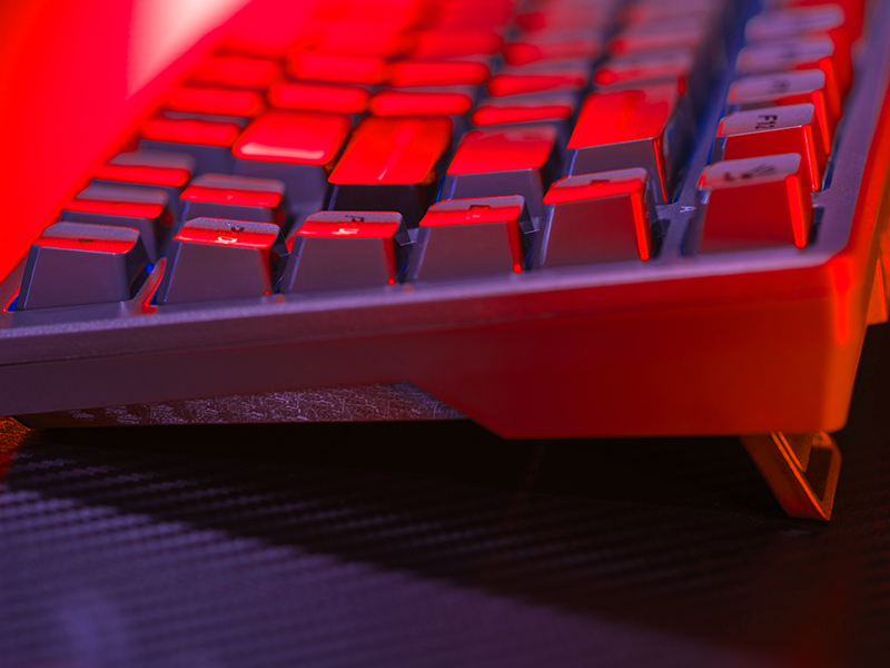 Rozkładane stopki umożliwiają ustawienie klawiatury pod dwoma kątami nachylenia – 3° lub 8°. Pozwala to dopasować ergonomię pracy do własnych preferencji.