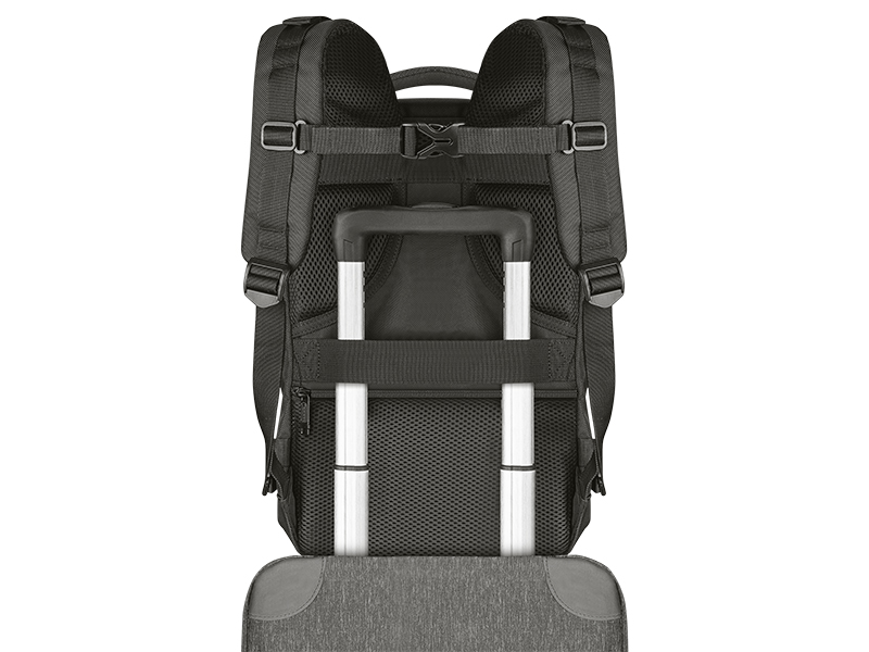 Dzięki bocznej rączce plecak można szybko przenieść, traktując go jak torbę podręczną. Dodatkowo, pasek mocowania do walizki ułatwia przemieszczanie się na lotnisku, zapewniając bezpieczeństwo i wygodę.