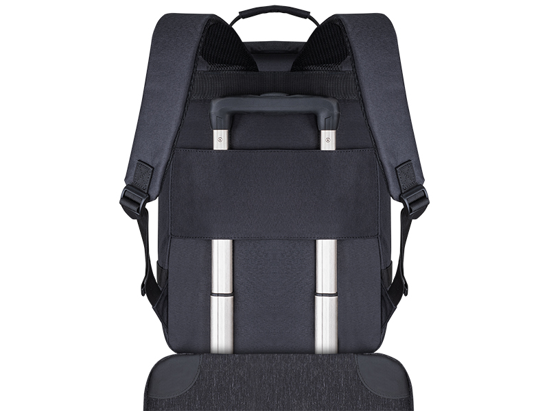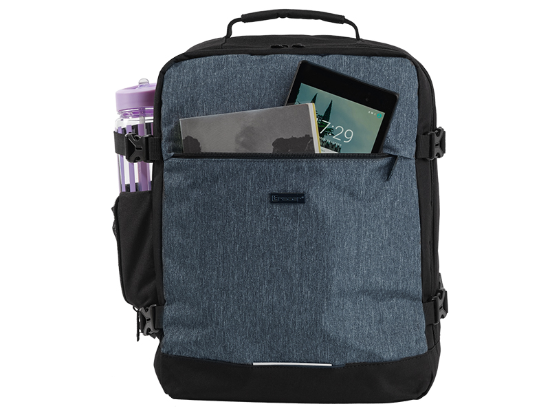 Boczna rączka umożliwia szybkie przenoszenie plecaka, jak torby podręcznej, gdy chcesz mieć go pod ręką, nie zdejmując go z pleców. Dodatkowo, pasek mocowania do walizki ułatwia przemieszczanie się na lotnisku, pozwalając na bezproblemowe przymocowanie plecaka do uchwytu walizki.