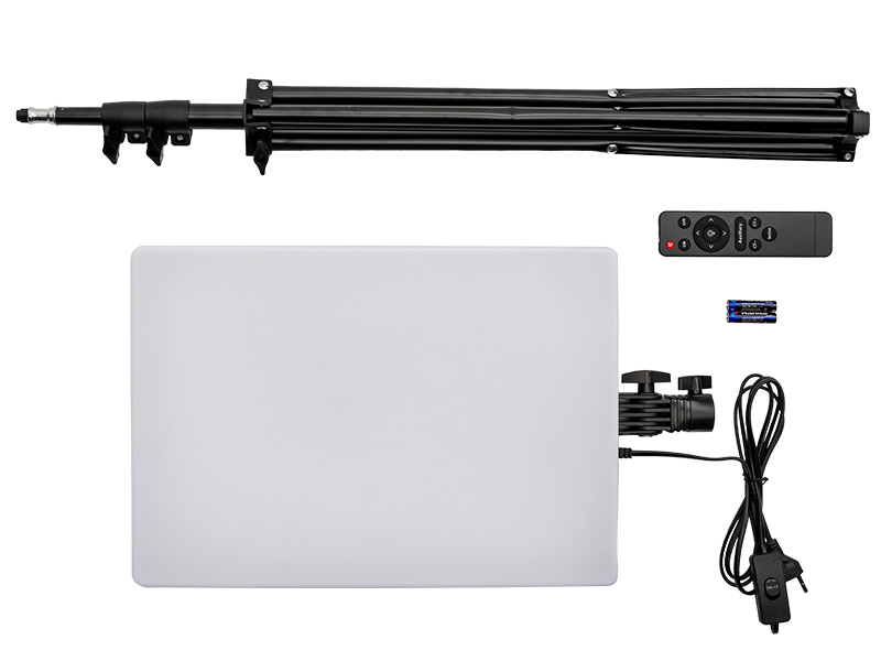 W komplecie znajdziesz regulowany statyw o maksymalnej wysokości 180 cm, który zapewnia stabilne i bezpieczne ustawienie lampy w dowolnym miejscu. Możesz dostosować wysokość do konkretnego ujęcia lub przestrzeni, w której pracujesz – bez względu na to, czy fotografujesz portret, kręcisz vloga, czy robisz packshoty w domowym studiu.