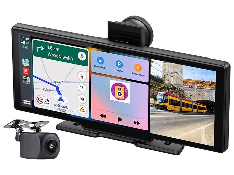 Dzięki obsłudze Apple CarPlay i Android Auto, stacja Tracer CR-Play 10.2 pozwala w prosty sposób połączyć smartfon z systemem multimedialnym samochodu. Możesz wygodnie korzystać z nawigacji lub odtwarzać muzykę – wszystko to na dużym, czytelnym ekranie. Intuicyjny interfejs ułatwia obsługę aplikacji i szybki dostęp do ich funkcji w czasie jazdy.