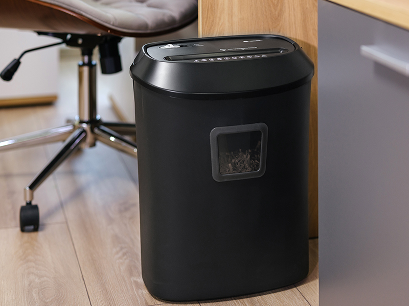 Dzięki funkcji Auto Start/Stop niszczarka automatycznie uruchamia się po włożeniu papieru i wyłącza po zakończeniu pracy, zwiększając wygodę i oszczędzając czas.