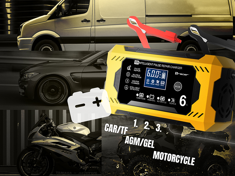 Urządzenie oferuje trzy dedykowane tryby, które pozwalają dopasować ładowanie do rodzaju akumulatora. Tryb CAR/TF sprawdzi się w samochodach osobowych i dostawczych, zapewniając stabilne i szybkie ładowanie większych ogniw. Tryb AGM/GEL został stworzony z myślą o nowoczesnych akumulatorach bezobsługowych, wymagających specjalnych parametrów pracy. Z kolei tryb MOTORCYCLE idealnie nadaje się do mniejszych akumulatorów stosowanych w motocyklach, skuterach czy quadach, zapewniając im bezpieczne i wydajne ładowanie.
