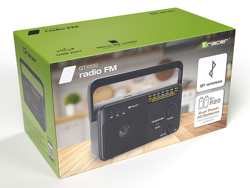 Tracer GTX100 to wszechstronne radio o retro wyglądzie, które oferuje nowoczesne funkcje, takie jak Bluetooth, odtwarzanie MP3 z USB i kart TF. Idealne do codziennego użytku, cieszy klasycznym designem i zapewnia wygodę słuchania w każdym miejscu.